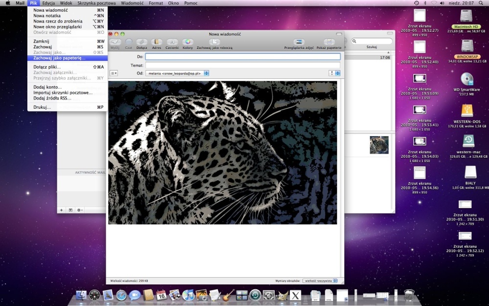 Ustawiamy się na konto do którego będziemy robić podpis, w środkowej kolumnie klikamy na plusik i wpisujemy naszą nazwę, w bocznej kolumnie wpisujemy nasze dane. Mój podpis trochę koślawy, bo Leoparda powinno być ładnie na środku (wybaczcie, już nie będę tego zmieniać).